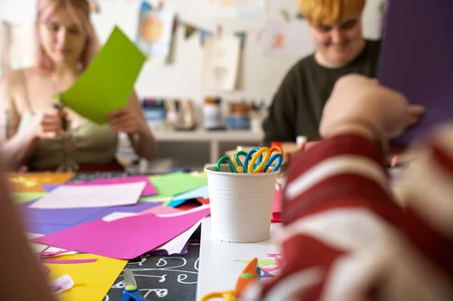My approach to this workshop was quite simple. I wanted to create a safe space where anyone can join and come as they are to share a moment and an activity together. I think that doing things together and by working with hands and using bright and joyful colors can help focusing on the present and to have an ease of whatever is troubling one's mind.